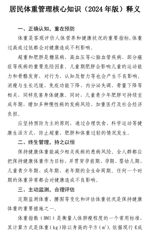 居民体重管理核心知识 (2024 年版)——市医保局宣