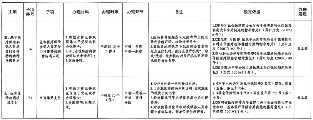 四川省省本级医疗保障经办政务服务事项清单调整情况表