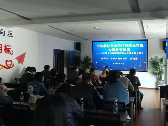 《中华人民共和国公职人员政务处分法》是新中国成立以来第一部全面系统规范公职人员惩戒制度的国家法律,也是继监察法之后,深化国家监察体制改革的又一重要制度成果。为深刻领会、准确把握《政务处分法》的新精神新要求,1月26日,市医保局党组开展专题教育培训活动,由临时党支部邀请市纪委监委驻市卫生健康委纪检监察组罗晓芳组长在党员大会上为全体党员授课。